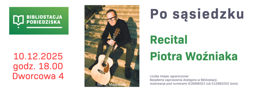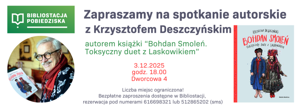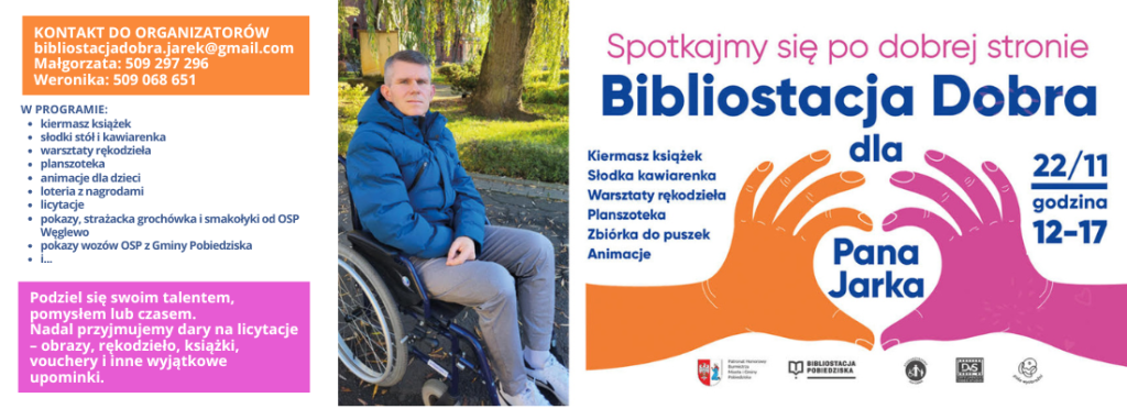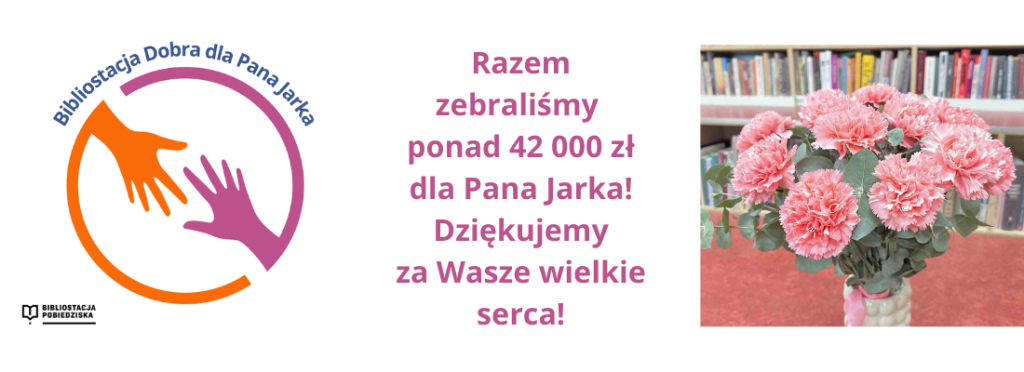 Uwaga! 12.12.2025 - piątek, wszystkie placówki czynne od 11.00 17.12.2025 - środa, wszystkie placówki zamknięte od 13.30 Za utrudnienia przepraszamy! POBIEDZISKA DWORCOWA 4 tel. 616698321 lub 512865202 ODDZIAŁ DLA DZIECI.tel. 786966444 pn. 10.00 - 16.00 wt. 11.00 - 19.00 śr. 8.00 - 16.00 cz. 11.00 - 19.00 pt. 10.00 - 16.00 sb. 9.00 - 13.00 (I i III miesiąca) POBIEDZISKA - LETNISKO tel. 618153445 w. 3 . wt. 8.00 - 17.00 śr. 8.00 - 15.00 cz. 8.00 - 14.30 pt. 10.00-14.30 BISKUPICE tel. 503104161 lub 618155005 pn. 9.00 - 16.00 wt. 11.00 - 18.00 śr. 8.00 - 15.00 cz. 11.00 - 18.00 pt. 9.00 - 15.00 sb. 8.00 - 12.00 (III miesiąca) POMARZANOWICE tel. 514205906 . wt. 8.00 - 17.00 śr. 8.00 - 14.00 cz. 8.00 - 17.00 pt. 11.00 - 14.00 Amor librorum nos unit - miłość do książek łączy ludzi Finisaż wystawy Aleksandry Hanaj-Podgórskiej Recital Piotra Woźniaka w Bibliostacji Krzysztof Deszczyński w Bibliostacji Cyfrowe dane, realna przygoda 42 000 zł zebraliśmy dla Pana Jarka! Bibliostacja dobra dla Pana Jarka! NOWOŚCI KSIĄŻKOWE
