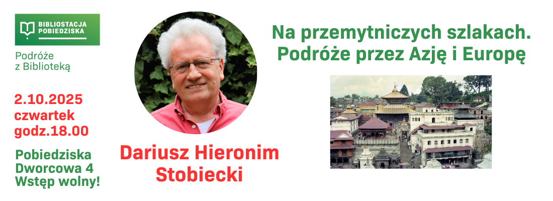 Bibliostacja Pobiedziska zaprasza na niezwykłe spotkanie podróżnicze! Czwartek, 2 października 2025 r. (uwaga – wyjątkowo czwartek!), godz. 18.00, Bibliostacja Pobiedziska Naszym gościem będzie Dariusz Hieronim Stobiecki – etnolog,…