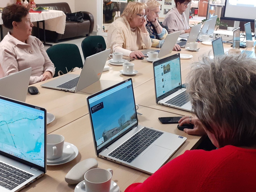 Prowadzący spotkanie, dr Lech Kaczmarek i dr Alicja Najwer, pokazali uczestnikom, że technologia może stać się świetnym narzędziem do odkrywania świata tuż za progiem domu i znacząco ułatwić orientację w każdej przestrzeni. Dzięki spokojnemu tempu kilkugodzinnych zajęć i jasnym wyjaśnieniom seniorzy przekonali się, że obsługa cyfrowych map czy geoportali wcale nie musi być skomplikowana. Uczestnicy ćwiczyli korzystanie z Google Maps, Geoportalu, Mapy.cz i innych aplikacji, dzięki którym można nie tylko zaplanować wycieczkę, lecz także odnaleźć na mapach interesujące miejsca.