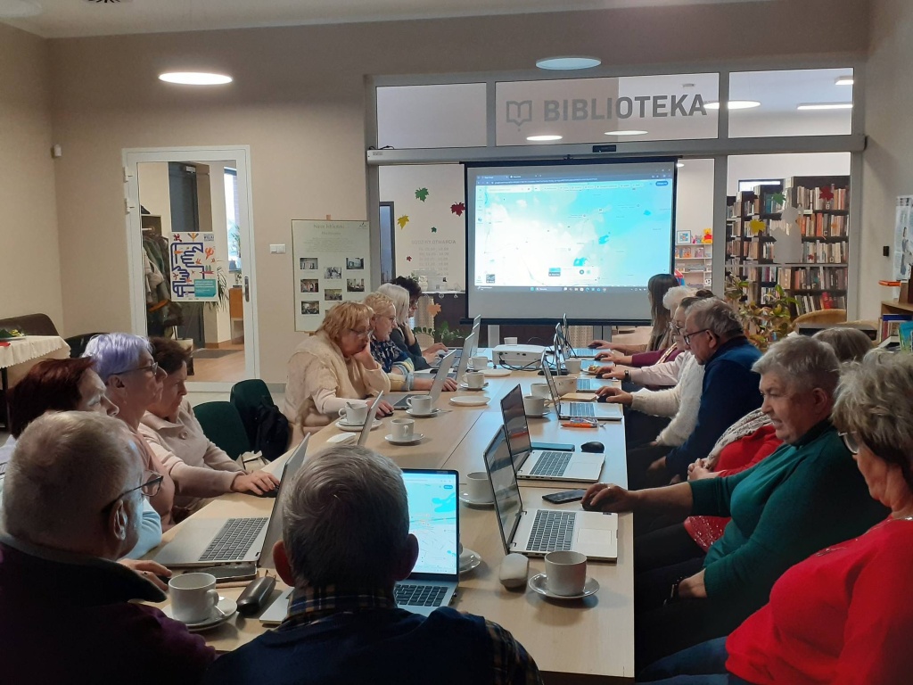 26 listopada 2025 w filii w Biskupicach naprawdę sporo się działo! Seniorzy z Klubu „Cybinka” oraz z Klubu Seniora w Pomarzanowicach, wzięli udział w niezwykle inspirujących warsztatach cyfrowych, pod hasłem „Cyfrowe dane, realna przygoda – poznaj swoją okolicę na nowo”. Wydarzenie zrealizowano w ramach Projektu Stowarzyszenia Geopark Wielkopolski (finansowanego z EFS+ na obszarze Lokalna Grupa Działania „Trakt Piastów”).